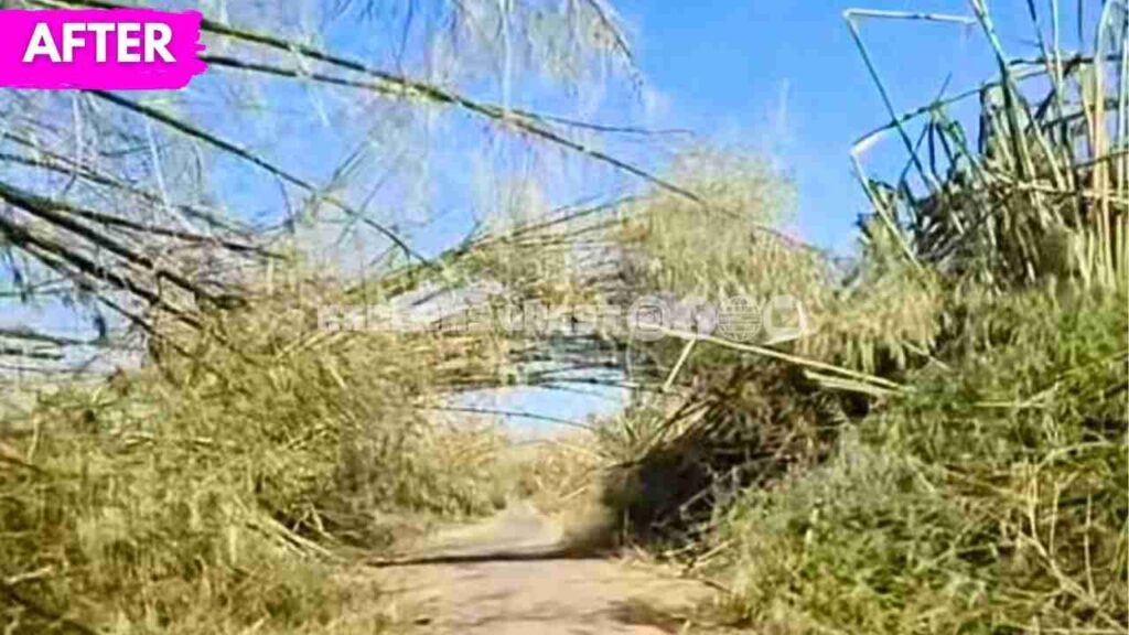 Hurricane Melissa, one of the most powerful cyclones to impact the island, made landfall as a Category 5 Hurricane. Its sheer force did not just strip leaves; it snapped the sturdy bamboo stalks, bringing the entire overhead canopy crashing down. The result was a transportation crisis: the main road was rendered impassable for days, buried under massive piles of bamboo, sand, and flood residue.